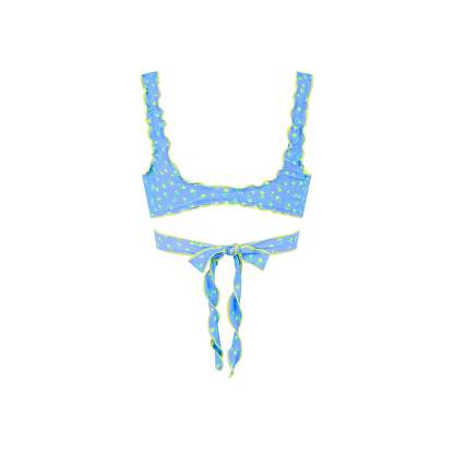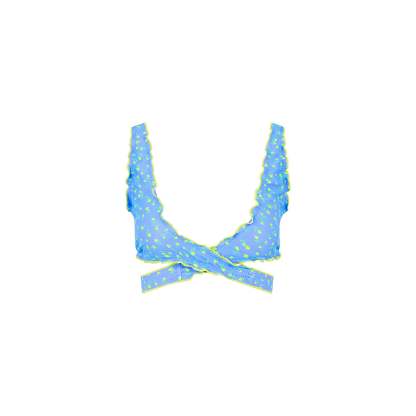 Lettuce Edge Wrap Bikini Top - Lemon Bloom