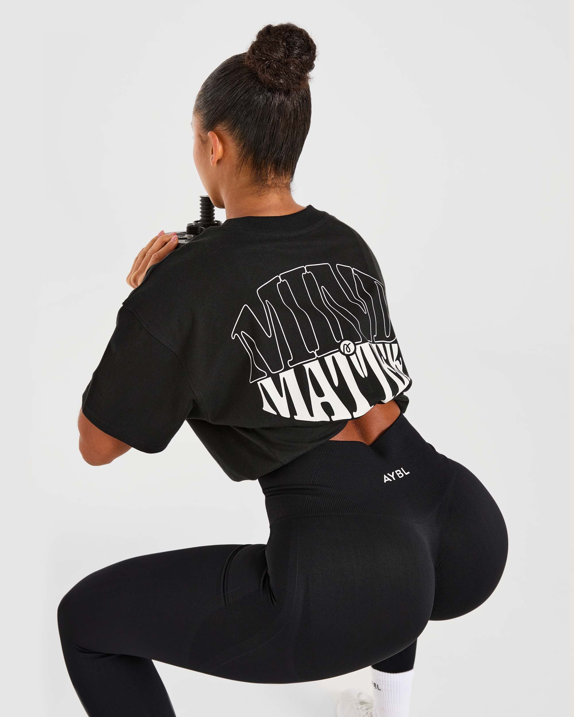 Meet the Mind Over Matter Oversized T-Shirt, your new go-to tee! With ultra-soft fabric, comfy dropped shoulders, and a soft ribbed neck, it's all about comfort and style. Featuring the AYBL logo and a 'Mind Over Matter' graphic, it's the ultimate choice for gym days or kicking back and relaxing.