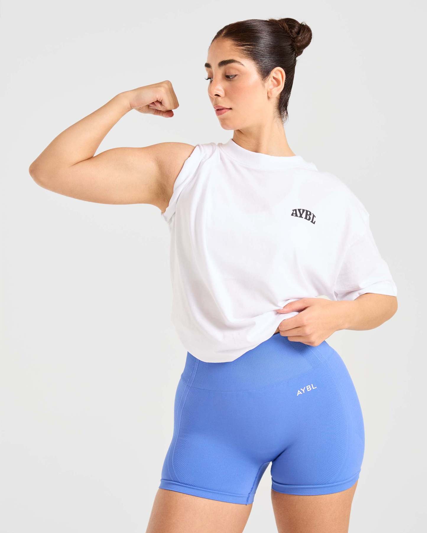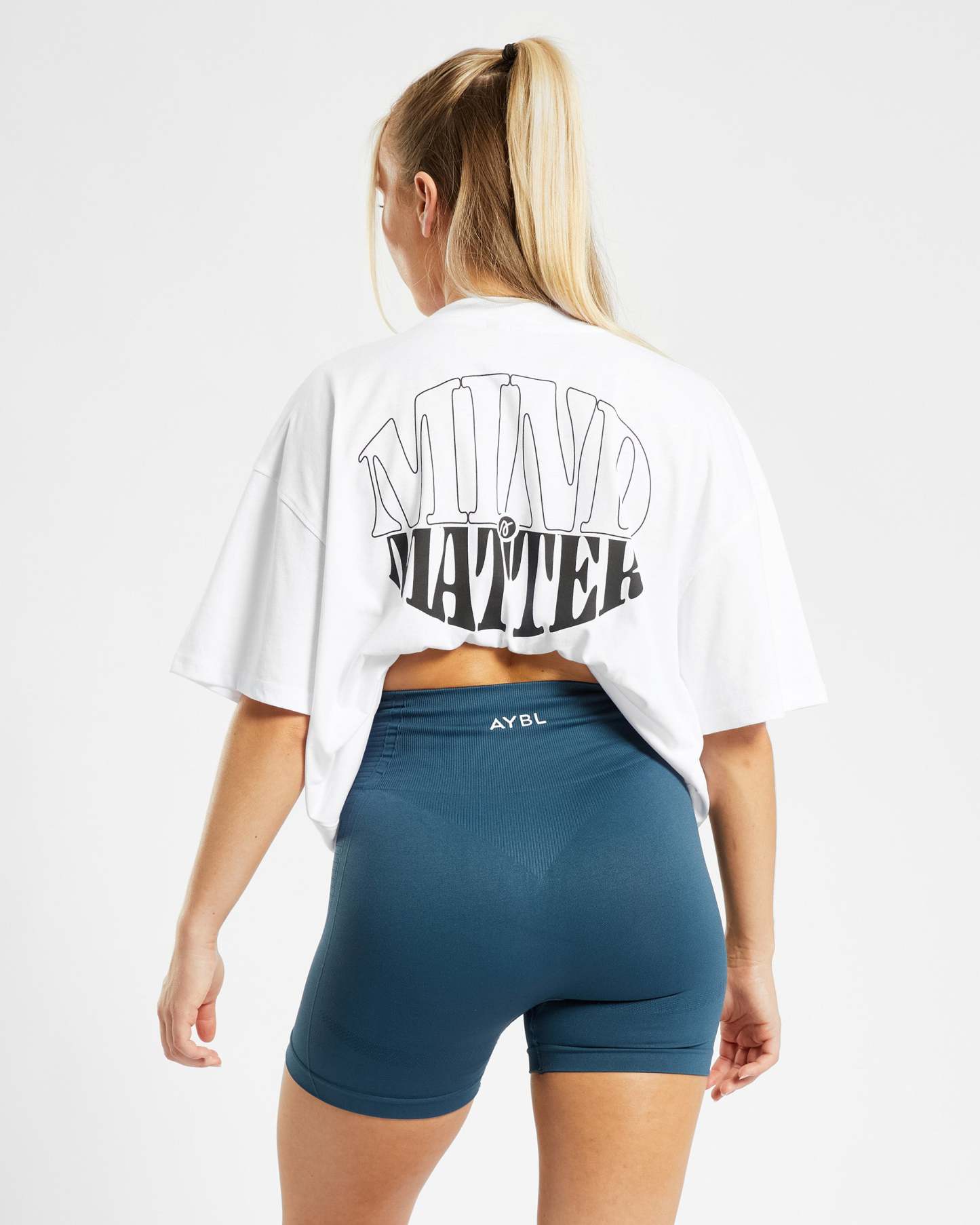 Meet the Mind Over Matter Oversized T-Shirt, your new go-to tee! With ultra-soft fabric, comfy dropped shoulders, and a soft ribbed neck, it's all about comfort and style. Featuring the AYBL logo and a 'Mind Over Matter' graphic, it's the ultimate choice for gym days or kicking back and relaxing.