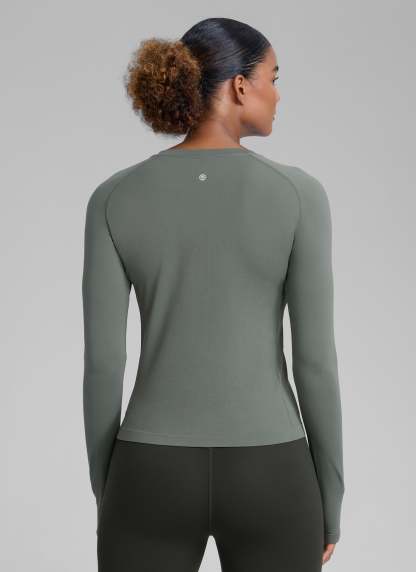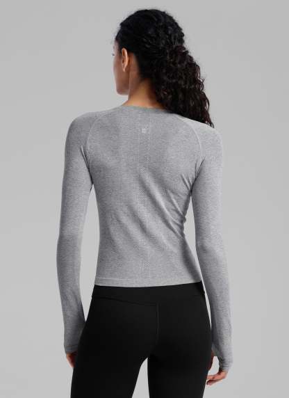 Seamless collection of smooth, soft knit fabric is designed to help reduce chafing, encourage ventilation and wick away sweat to help you stay dry. Designed for running and training, gives you a better workout. Breathable mesh is placed in high-sweat areas to keep you cool and ventilated during your workouts. Proper length to the waist, the sweatshirt features thumbholes and a fitted fit for comfortable movement.