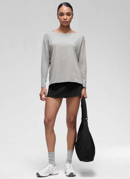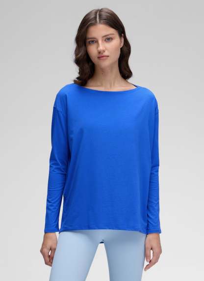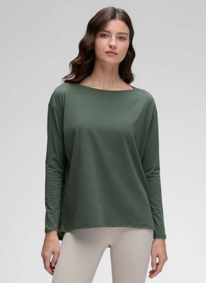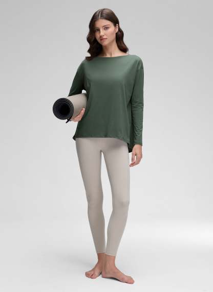 Pima Cotton collection is super soft and feels great against your skin. This long sleeve top is perfect for yoga or daily wear. Classic boat neckline, loose fit design allows you to move freely without restriction during exercise.