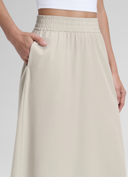 Feathery-Fit Drapey Pockets Midi Skirt