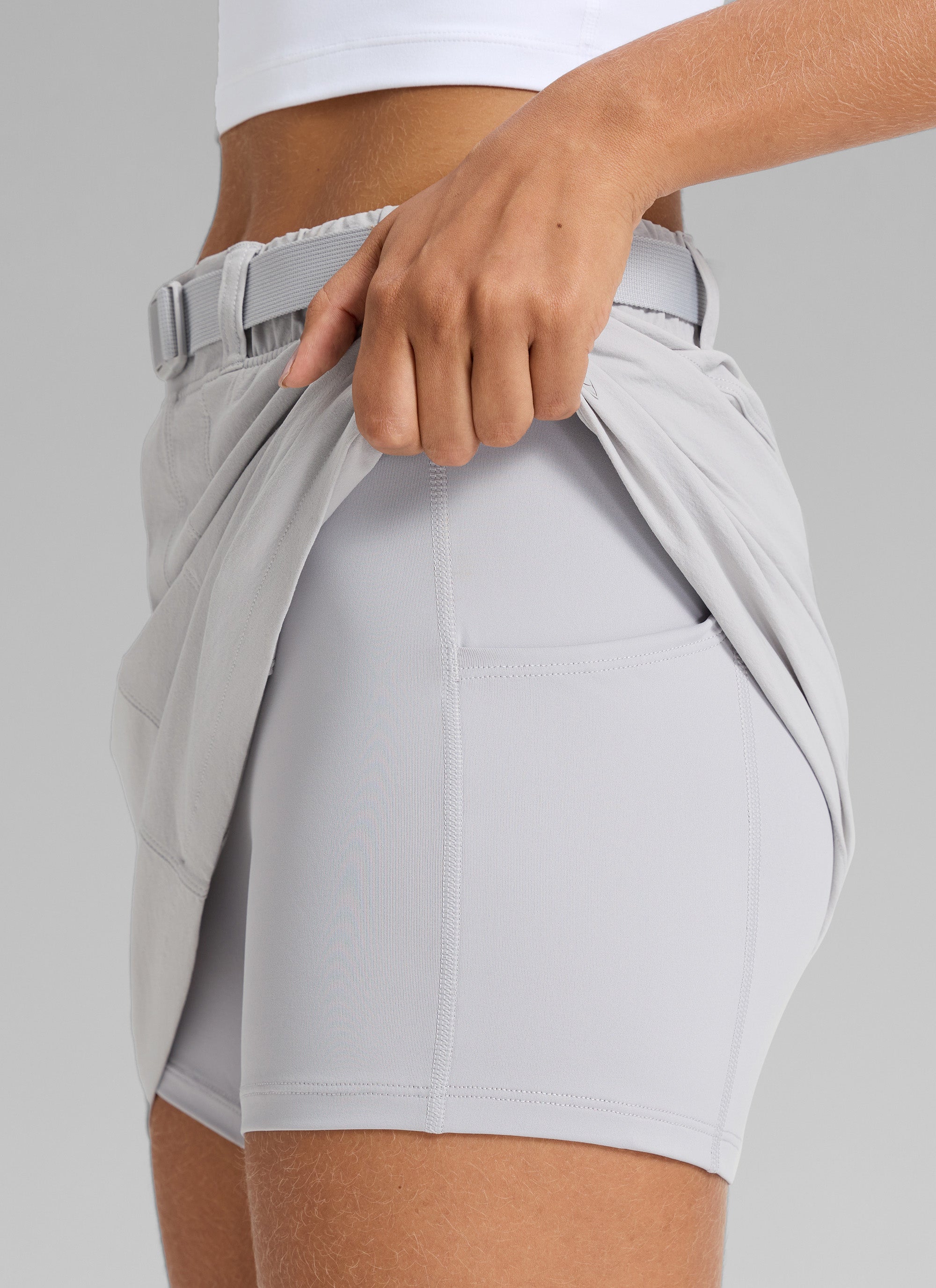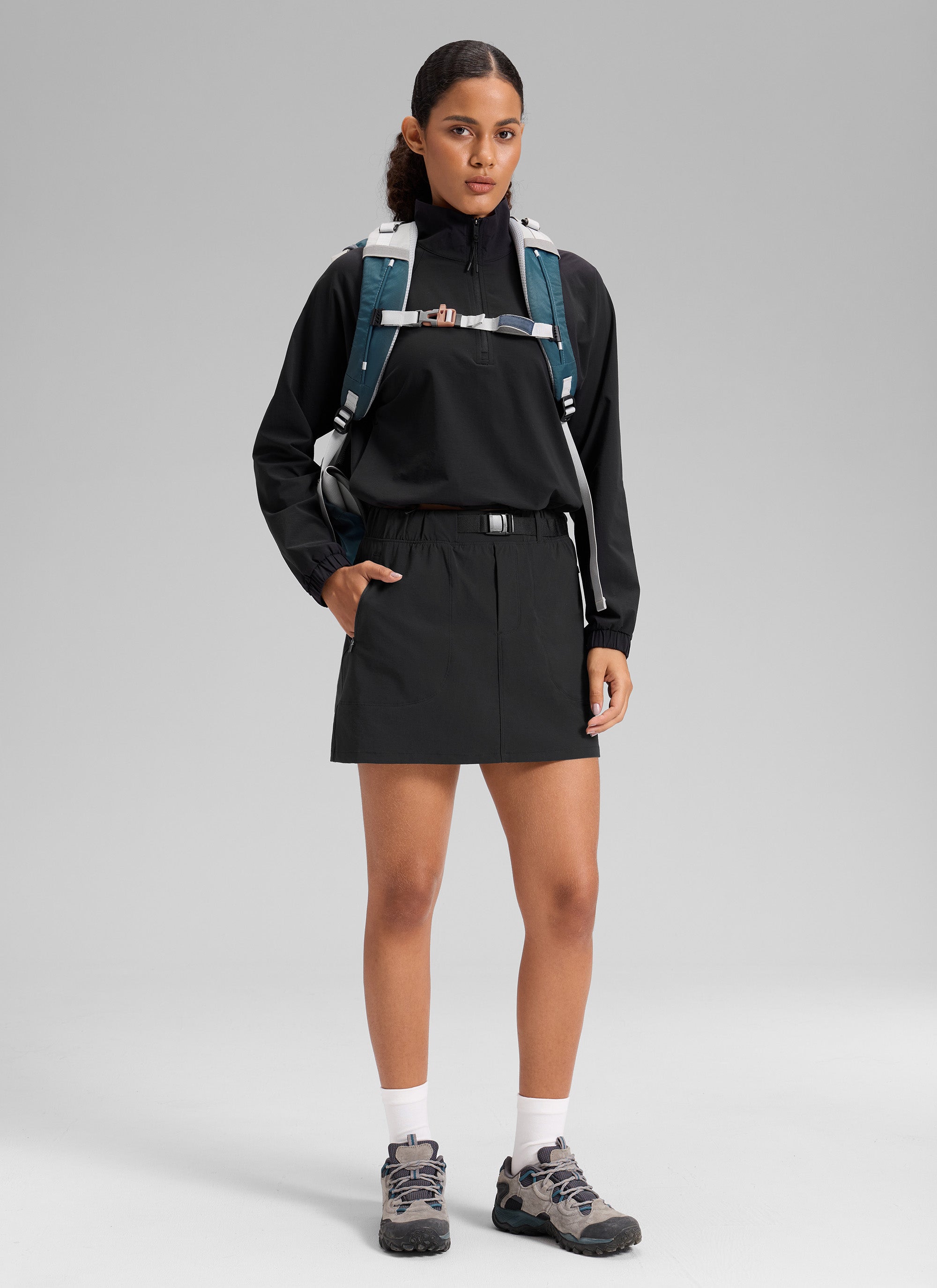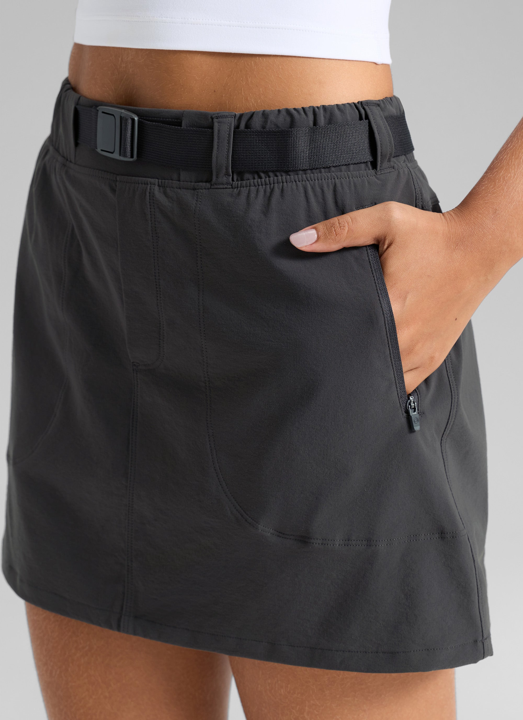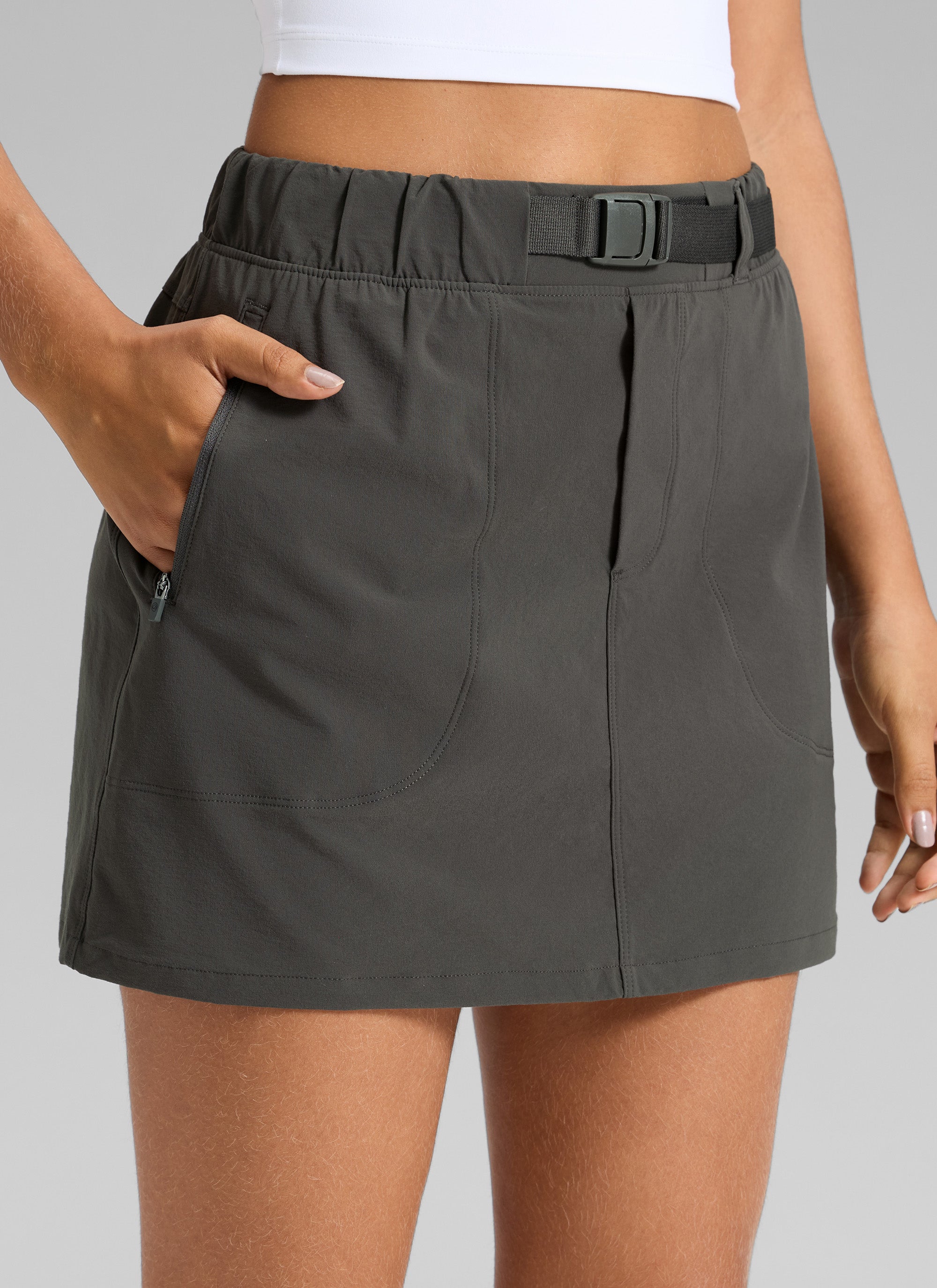 Crafted from stretchy, breathable and lightweight fabric, this hiking skirt with functional webbing belted waistband design for easy adjustment and unrestricted movement. Perfect for hiking and outdoor activities.
