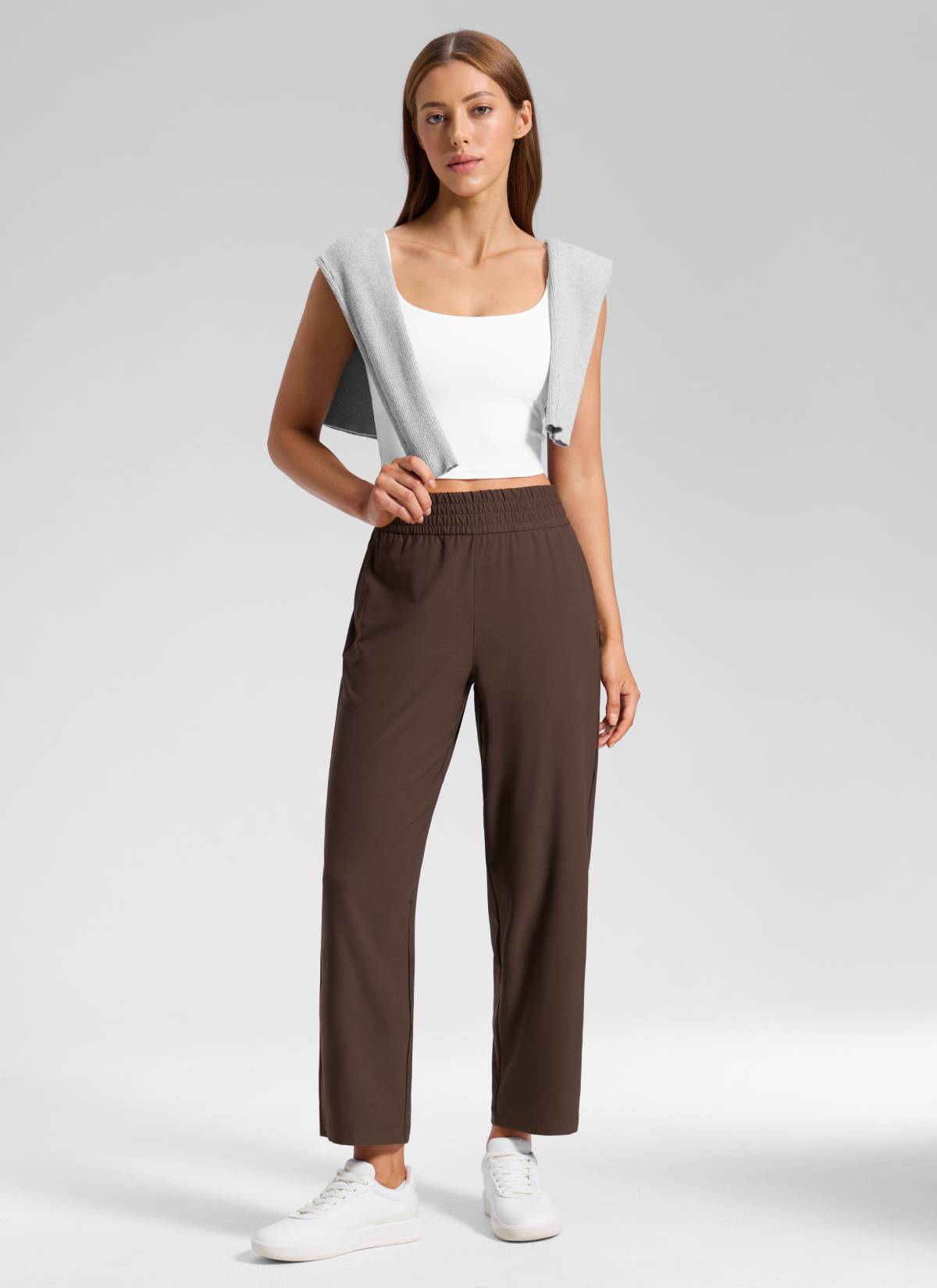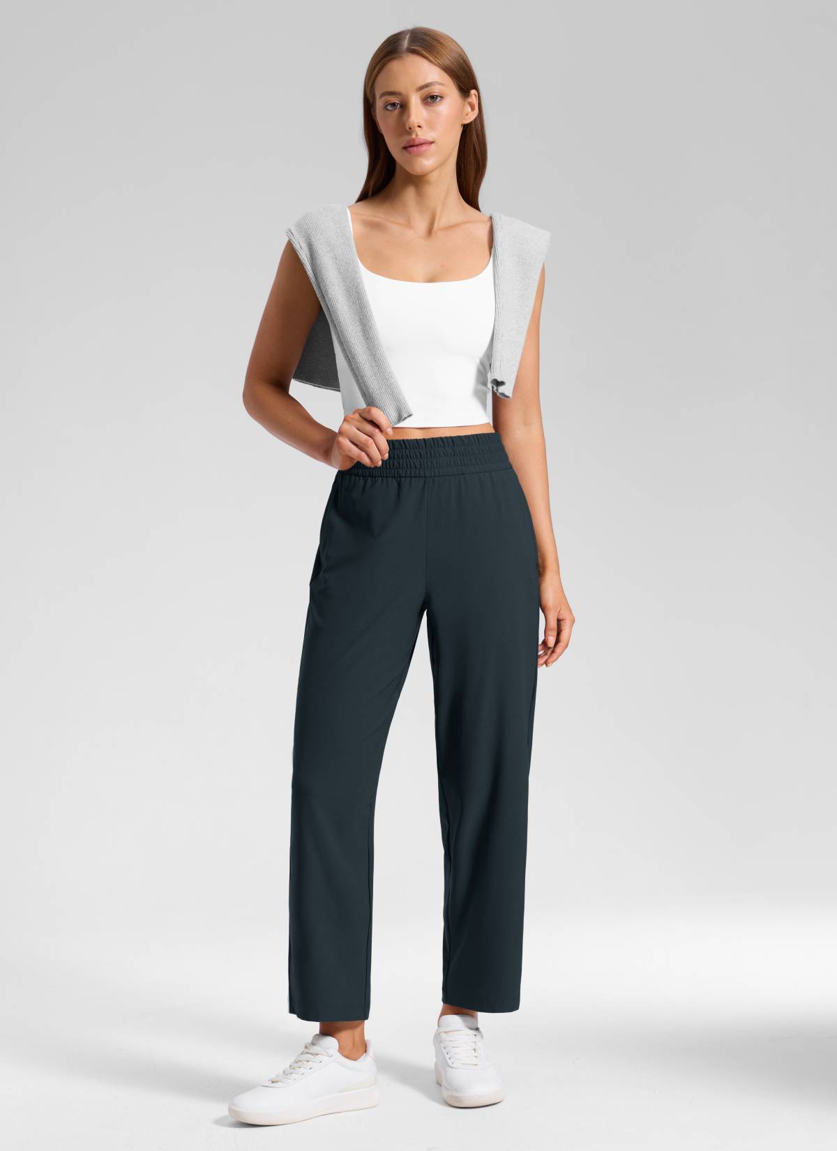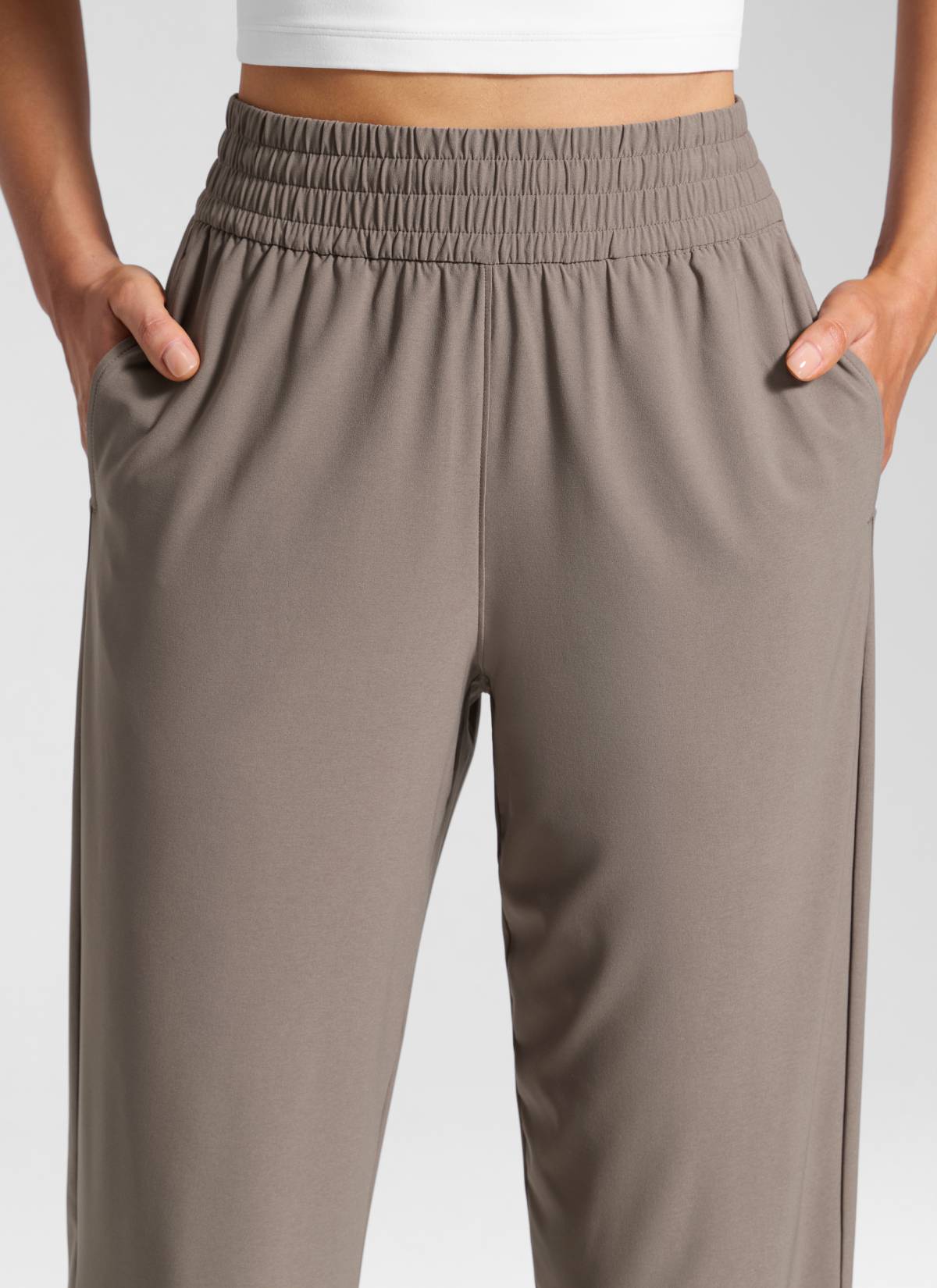 Feathery-Fit Drapey fabric. Still lightweight and breathable, but softer and not clingy with slightly stretchy. These pants are made of ultra-soft, weightless, breathable fabric, quick-drying and drapey. It's perfect for casual, travel, running errands, or work.