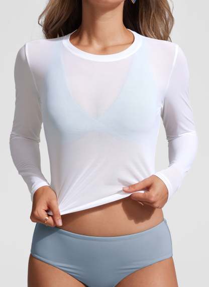 CRZ YOGA Women's swimwear cover ups, the fabric is light, ultra-breathable and quick dry, bringing you a comfortable beach experience. Long sleeve crop top offer enough coverage and chic look. Perfectly for beach, summer vacation, pool, cruise, and daily wear.