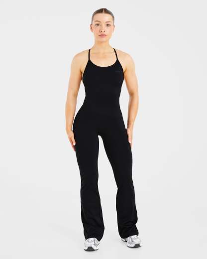 Sculpt Backless Flared All In One - Black