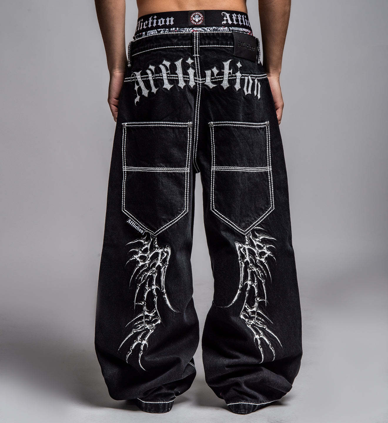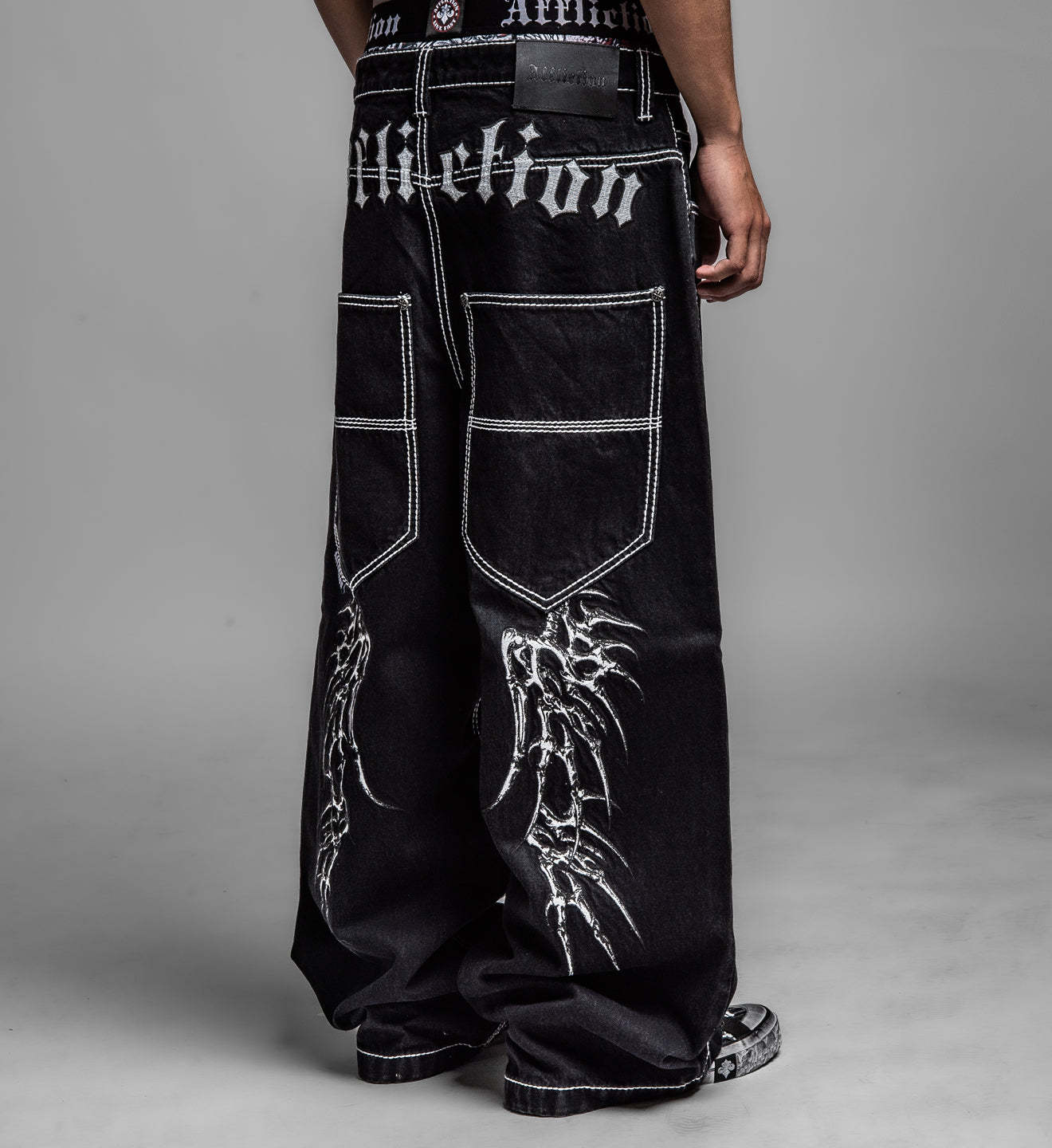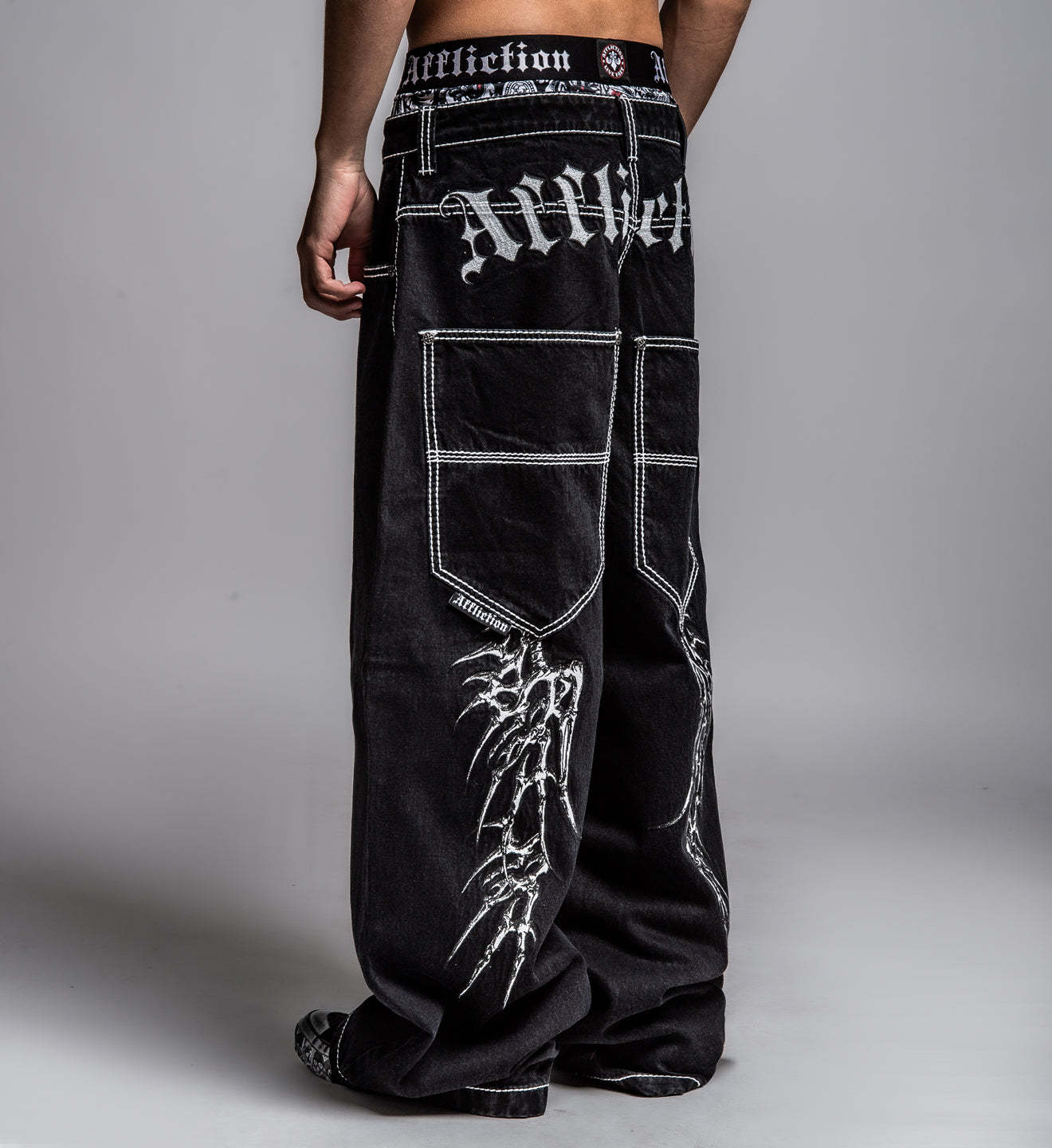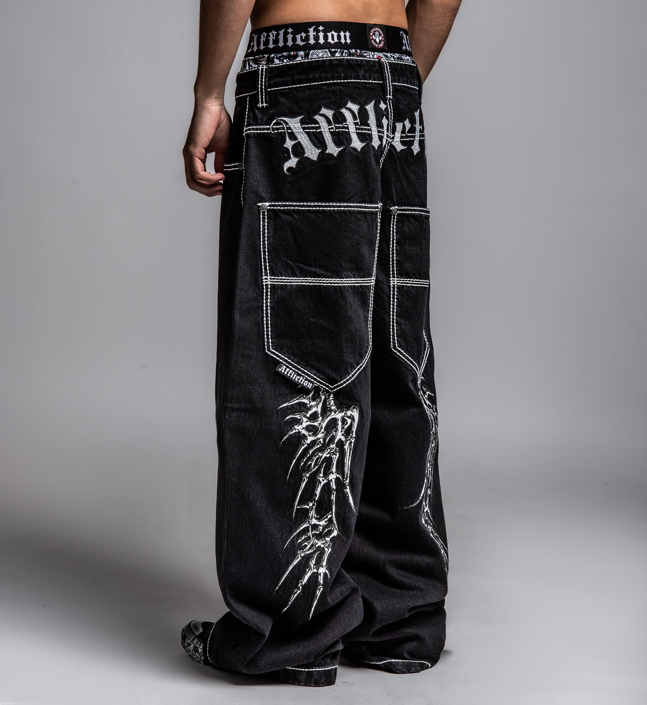 - Embroidered Skeleton Wings On Back Legs