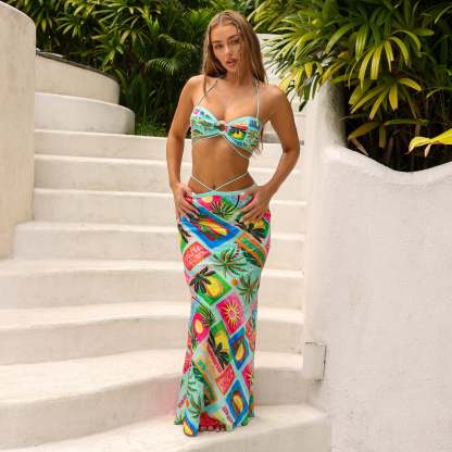 Strappy Bias Maxi Skirt - Ocean Honey