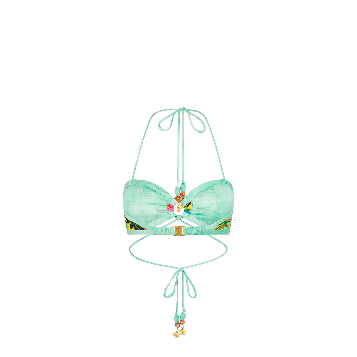 - Adjustable halter strap & underbust tie