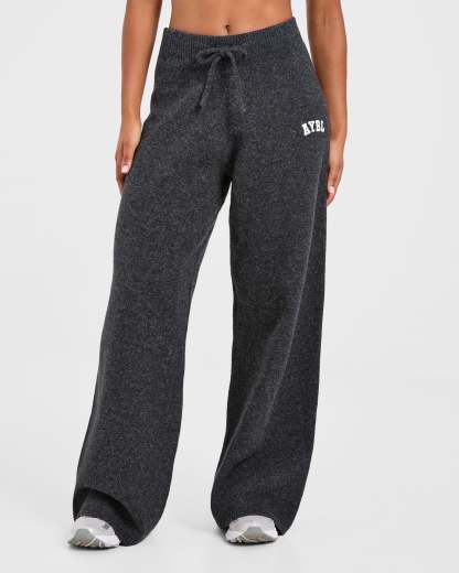 Varsity Oversized Knitted Joggers - Charcoal